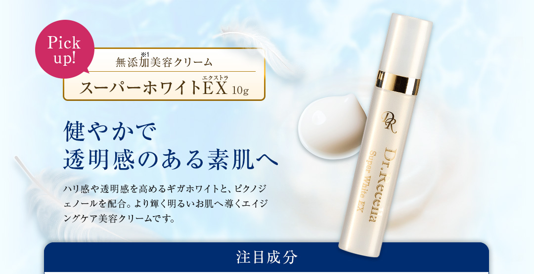 ・もうすぐ60歳になる私ですが「スーパーホワイトEX」を使い始めて約1年ですが年齢を感じさせない透明感とハリはすごいな~とびっくりしています。